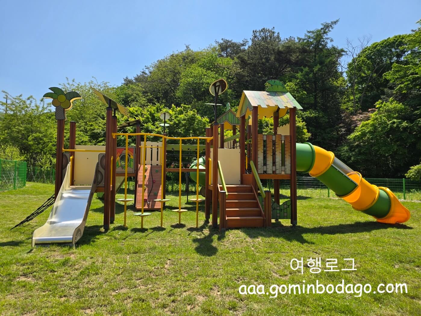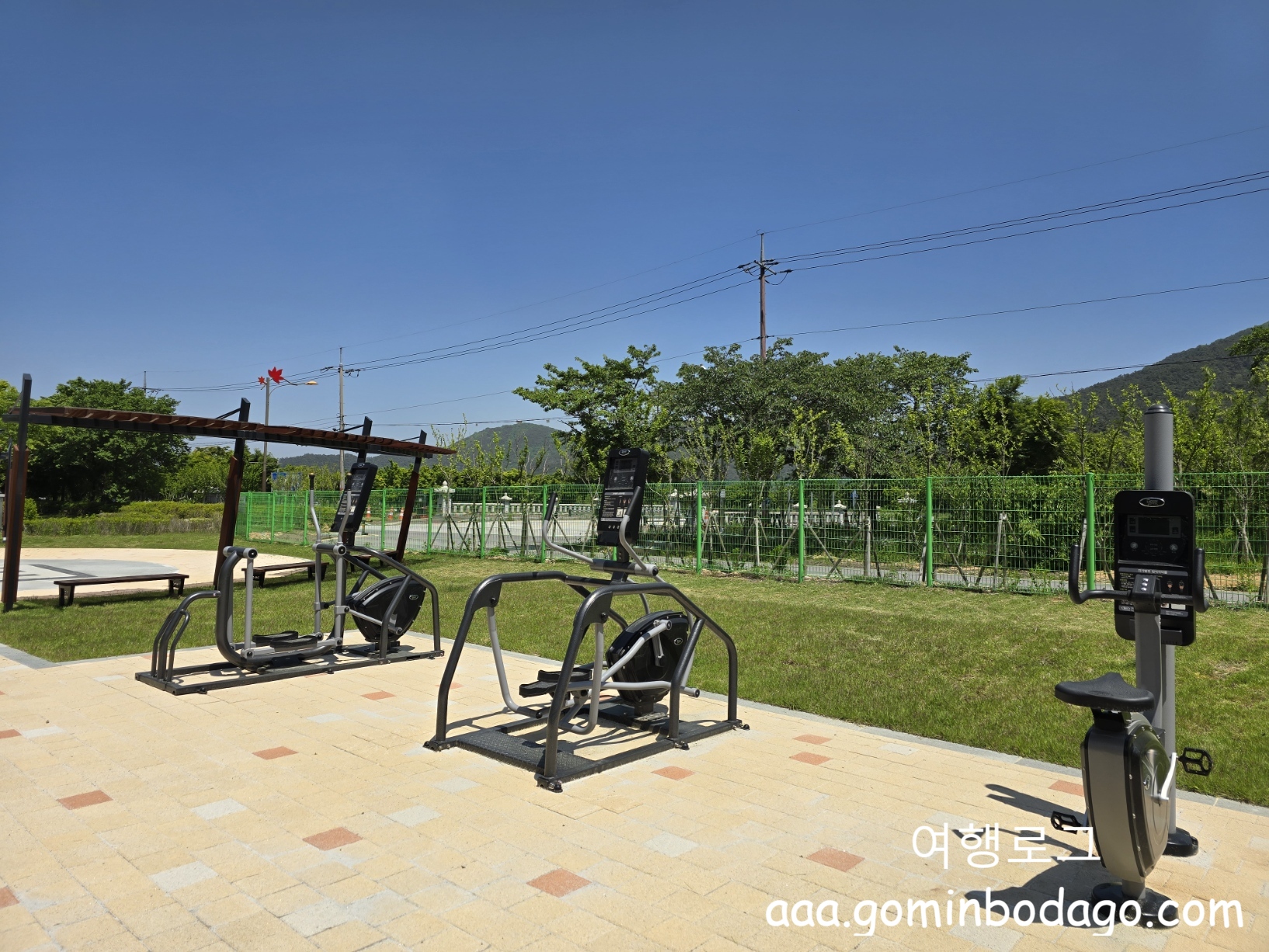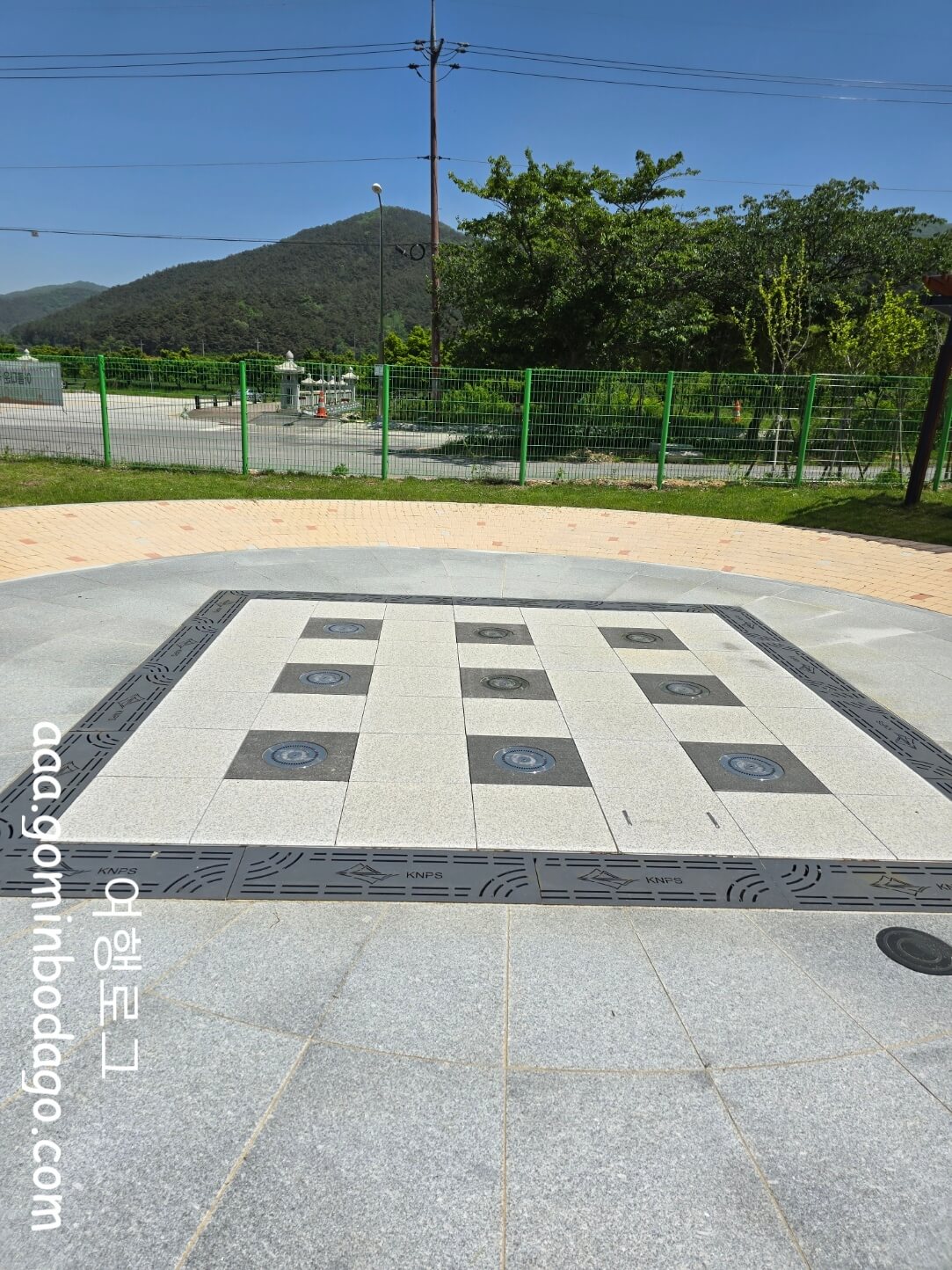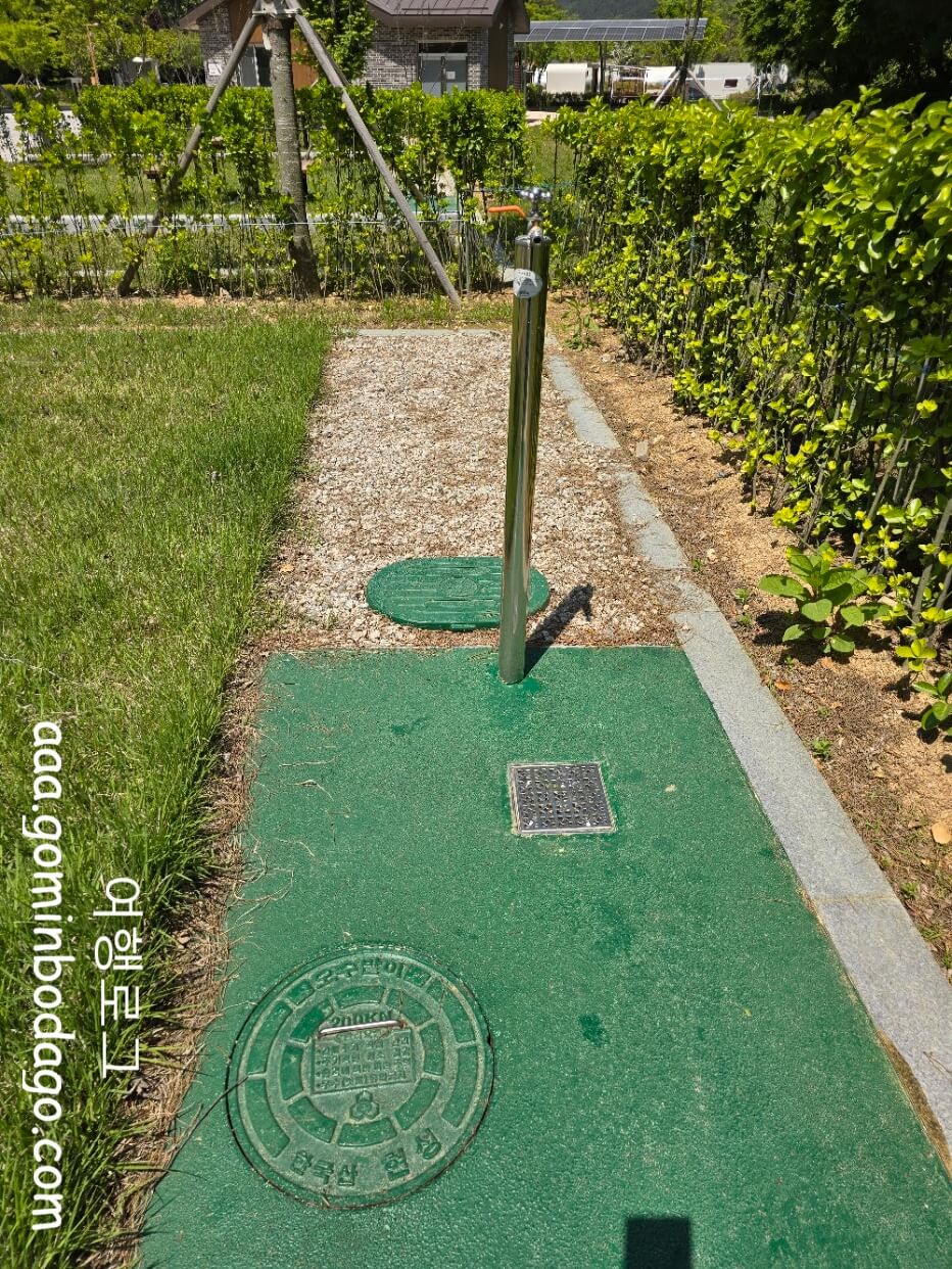 복합영지 앞에는 분수와 어린이들을 위한 놀이터 운동기구까지 있습니다.