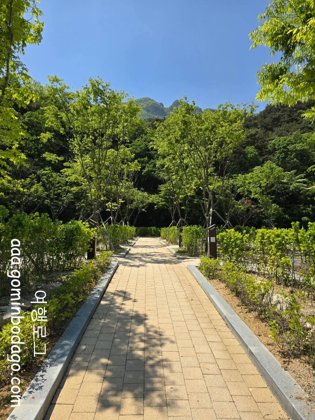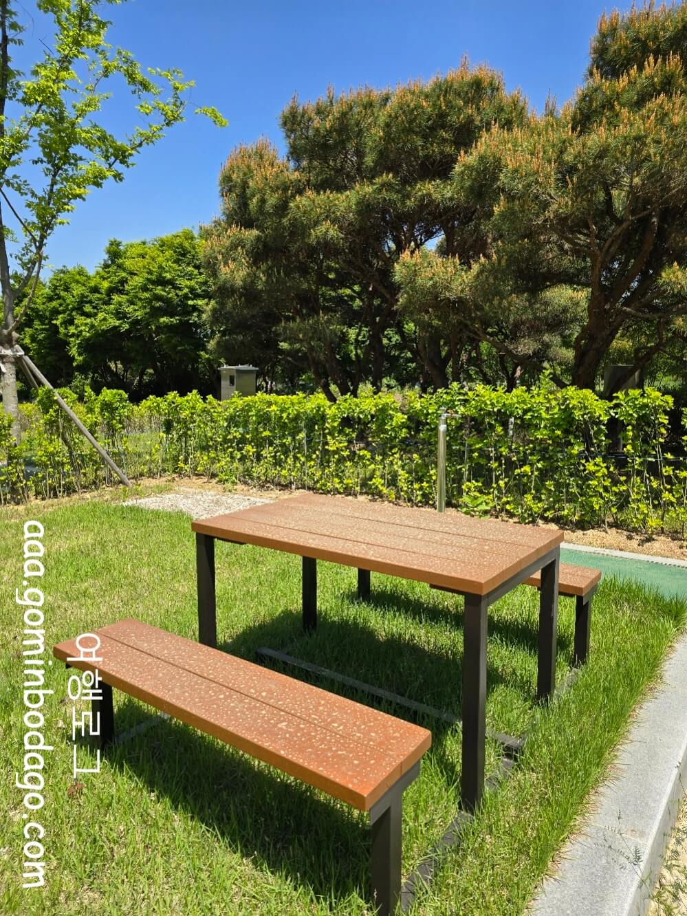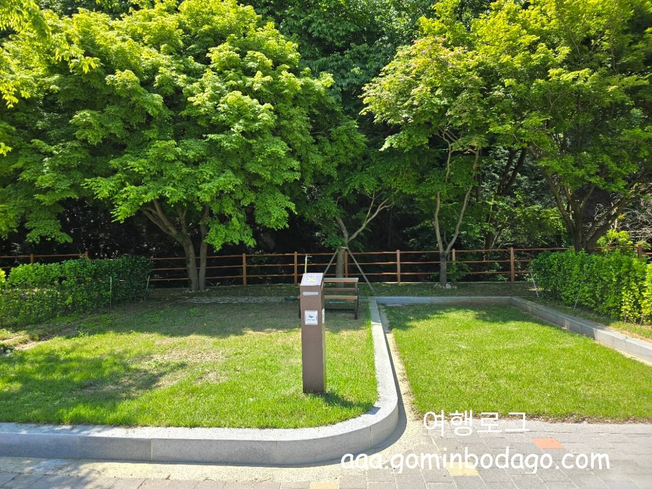 복합영지 앞에는 분수와 어린이들을 위한 놀이터 운동기구까지 있습니다.