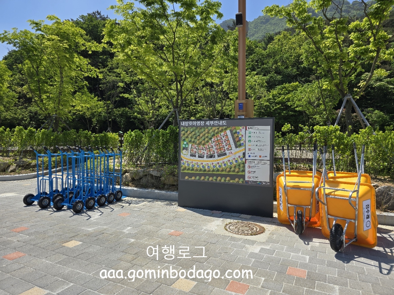 일반영지는 사이트옆 주차는 불가하기 때문에 짐을 나를 수 있는 수레와 카트가 준비되어 있습니다.