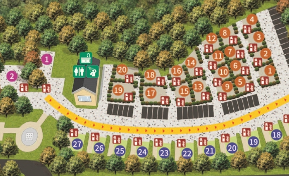 (일반영지 20동, 캠핑용 자동차전용야영지 27동, 카라반 6동, 복합영지 2동)