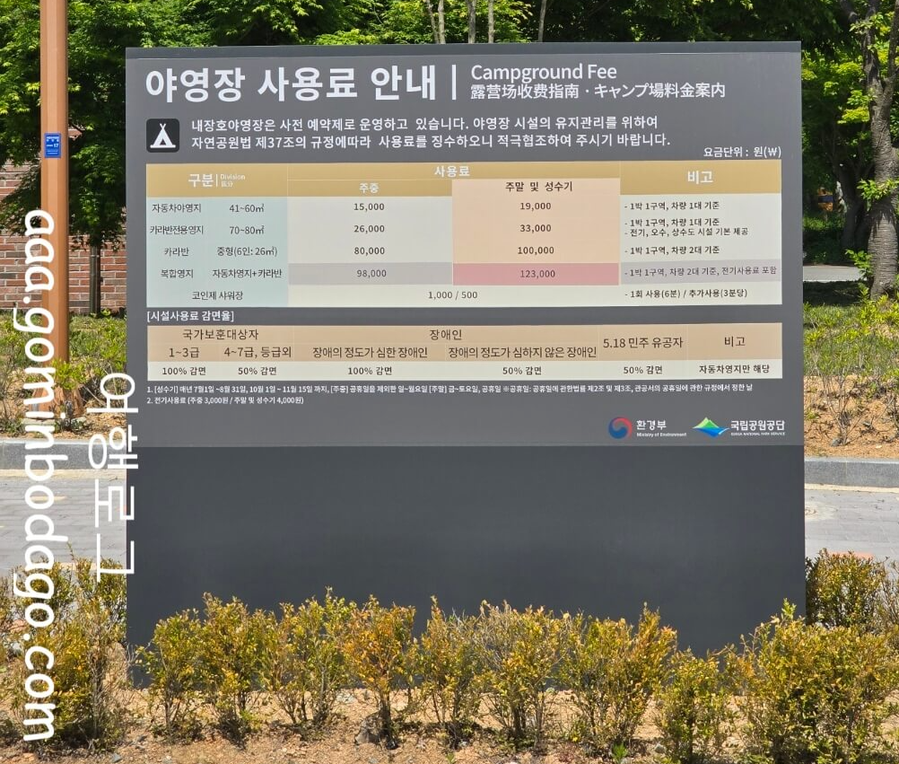 ✅입/퇴실시간 : 일반야영지, 캠핑용 자동차전용야영지: 오후 2시~익일 낮 12시(정오)