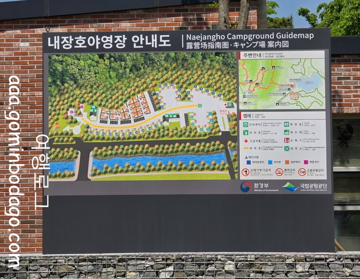 내장호 야영장의 전체 안내도입니다. 사이트는 총 55동입니다.