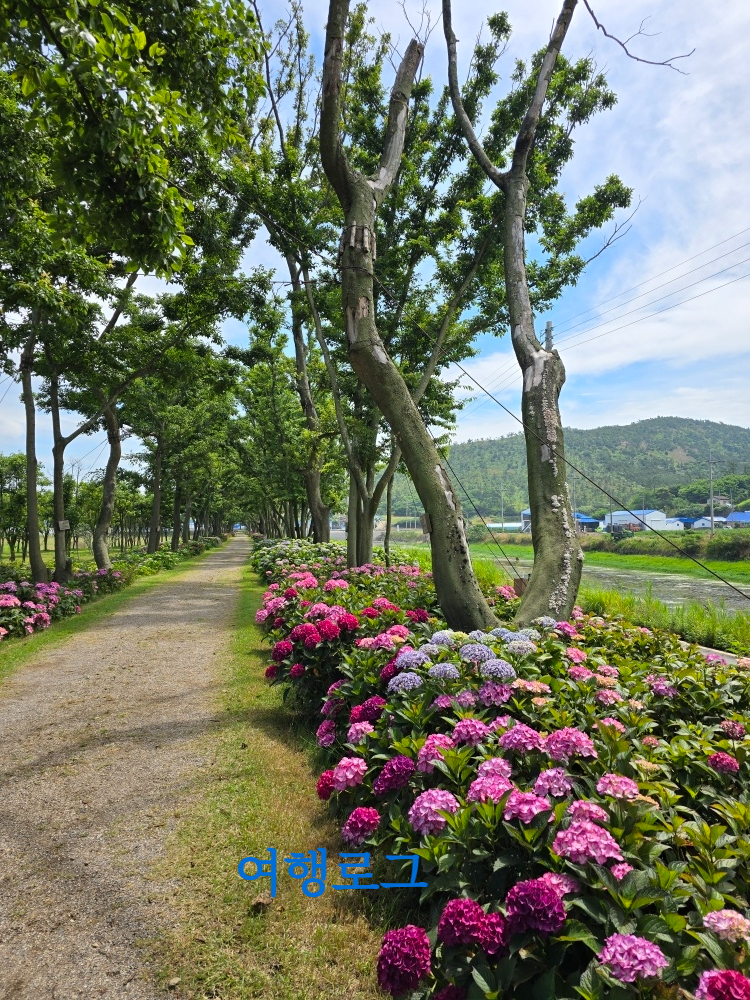 평지라서 누구나 쉽게 걸어갈 수 있고 가면서 다양한 색감으로 활짝 핀 여러 종류의 수국을 볼 수 있습니다.