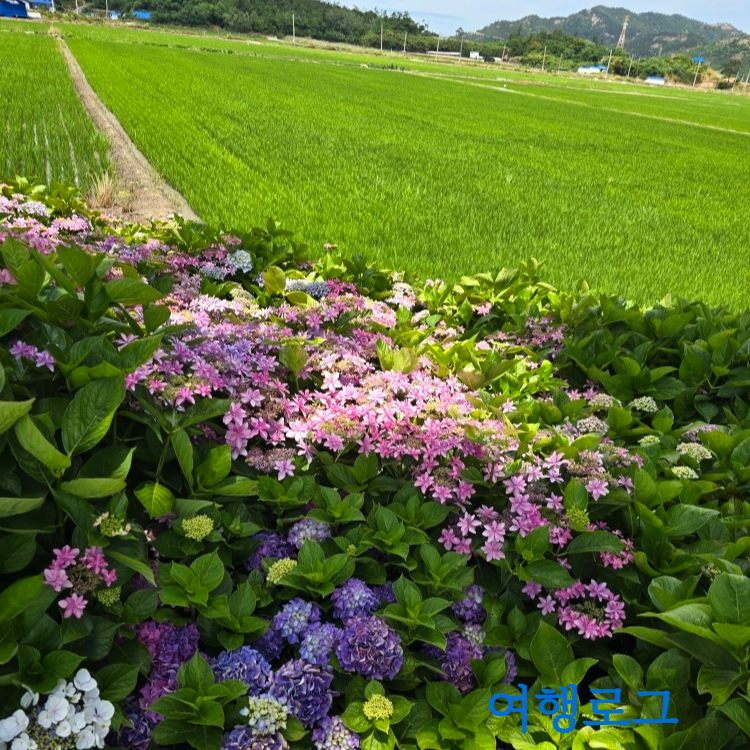 길 바깥쪽으로도 가득한 수국들이 여러 색깔을 뽐내고 있습니다.