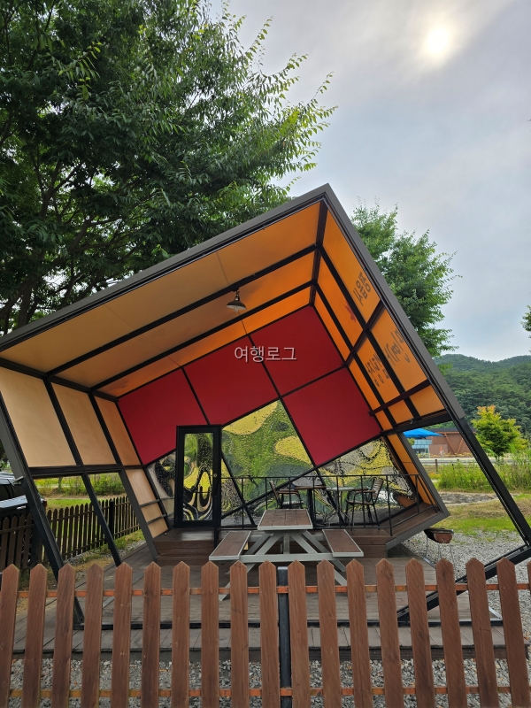 마름모 꼴의 독특한 구조의 글램핑입니다. 바로 옆으로 주차 가능합니다.