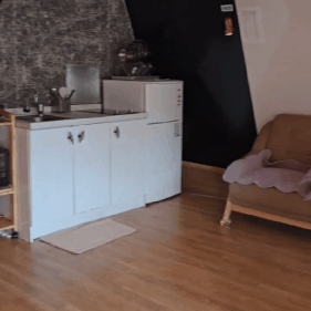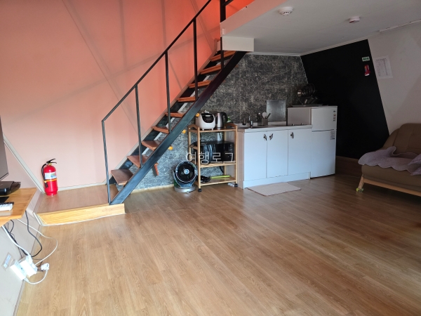 1층은 일반 원룸 같은 형태로 소파와 식탁이 있습니다.