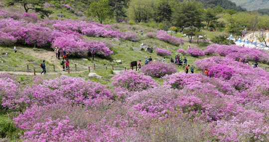 제40회 산청황매산철쭉제가 "산청, 철쭉에 물들다"는 주제로 2024.4.27(토)~5.12(일)까지 산청군 차황면 법평일 1-1 일원에서 펼쳐집니다. 산 정상과 능선에는 진분홍색으로 물들며 산상화원을 이루는 아름다운 철쭉의 자태를 볼 수 있습니다.