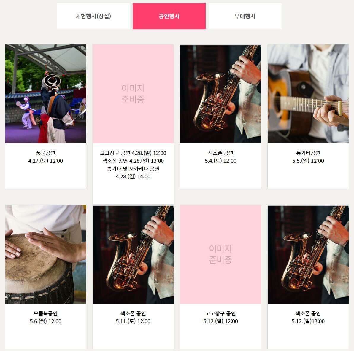 주요 무대를 비롯하여 축제장 기반시설의 재난·안전관리 강화를 위해 각각의 축제부스를 재배치하고 관람 편의를 위해 관람 동선에 따른 체험장 및 판매장 공간도 효율적으로 배치하였습니다.
