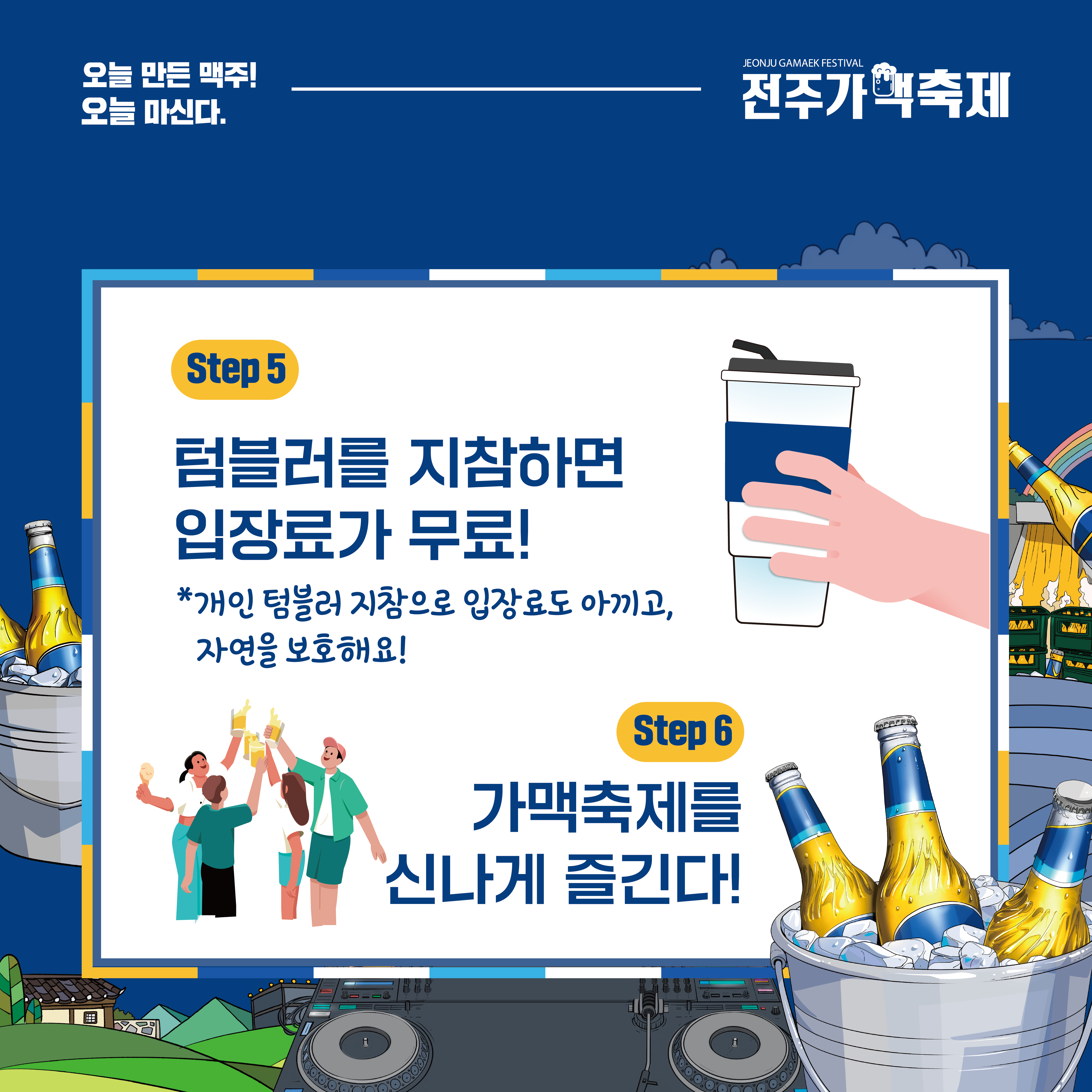 하지만 이때, 텀블러를 지참하면 입장료가 무료입니다! 가져온 텀블러에 맥주를 따라 마시면 된다는 것!!