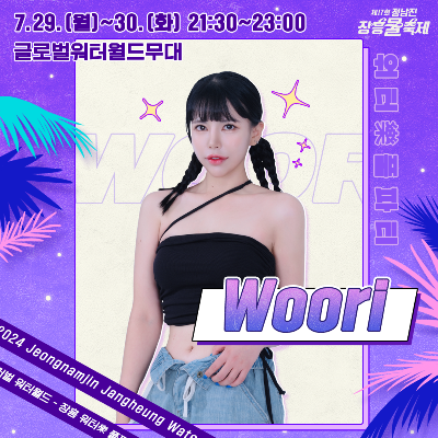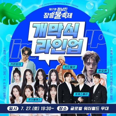 올해 정남진 장흥물축제에서는 어느 때보다 화려한 출연진 라인업을 구성해 기대감을 높이고 있습니다. 7월 27일 개막축하 공연을 시작으로 글로벌 워터월드(워터락 풀파티)가 7일 동안 뜨거운 밤의 열기를 식혀줍니다. 또한 올해 첫 선을 보이는 장흥 락 페스티벌은 더욱 젊어진 물축제의 모습을 보여준다고 합니다. 아울러 목포 MBC 축하공연, KBC 광주방송 축하공연 등의 무대도 열립니다.