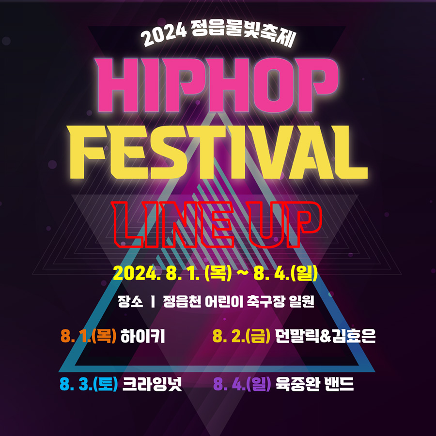 여름’과 ‘젊음’, ‘락’을 연계한 힙한 젊음의 여름축제로 MZ세대에 특화된 젊은 감성 축제이며 정읍천 반딧불이 야간경관조명이 여름 감성을 자아내고 복합형 바닥분수인 미로분수에서 낮에는 물놀이, 밤에는 국내 최고 힙한 가수(하이키, 던말릭&김효은, 크라잉넛, 육중완밴드)들이 관객과 어우러져 한여름의 뜨거운 무대 선사합니다.