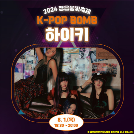 축제 첫날에는 뛰어난 가창력과 댄스 실력을 갖춘 걸그룹인 하이키가 축제의 시작을 알리고, 개막식은 둘째 날인 2일 저녁 7시 열립니다. 개막식에서는 LED 스크린 터치 세레머니와 함께 물 축포를 쏘아 올리는 개막퍼포먼스와 던말릭, 김효은의 축하공연이 이어집니다. 3일째는 ‘인디밴드계의 조상’이라 불리는 크라잉넛, 4일째는 공감을 불러일으키는 가사와 레트로한 멜로디음악으로 사랑받고 있는 육중완밴드가 시원하고 재미있는 무대를 선사할 예정입니다. 여기에 특별히 본 공연에 앞서 지역의 끼 많은 청소년을 위한 자유무대도 운영합니다.